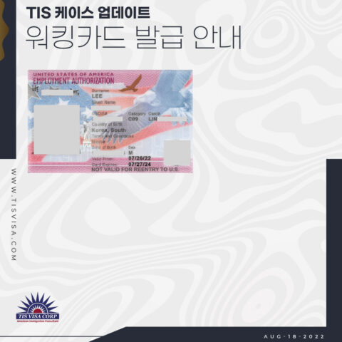 이** 님 외 8분의 워킹카드 승인 및 발급 축하드립니다. 1년 유효기간으로 발급되던 콤보카드 유효기간이 2년으로 발급되고 있습니다. 축하드립니다. 영주권이 최종적으로 승인될 때까지 최선을 다해 도움드릴 수 있도록 하겠습니다.